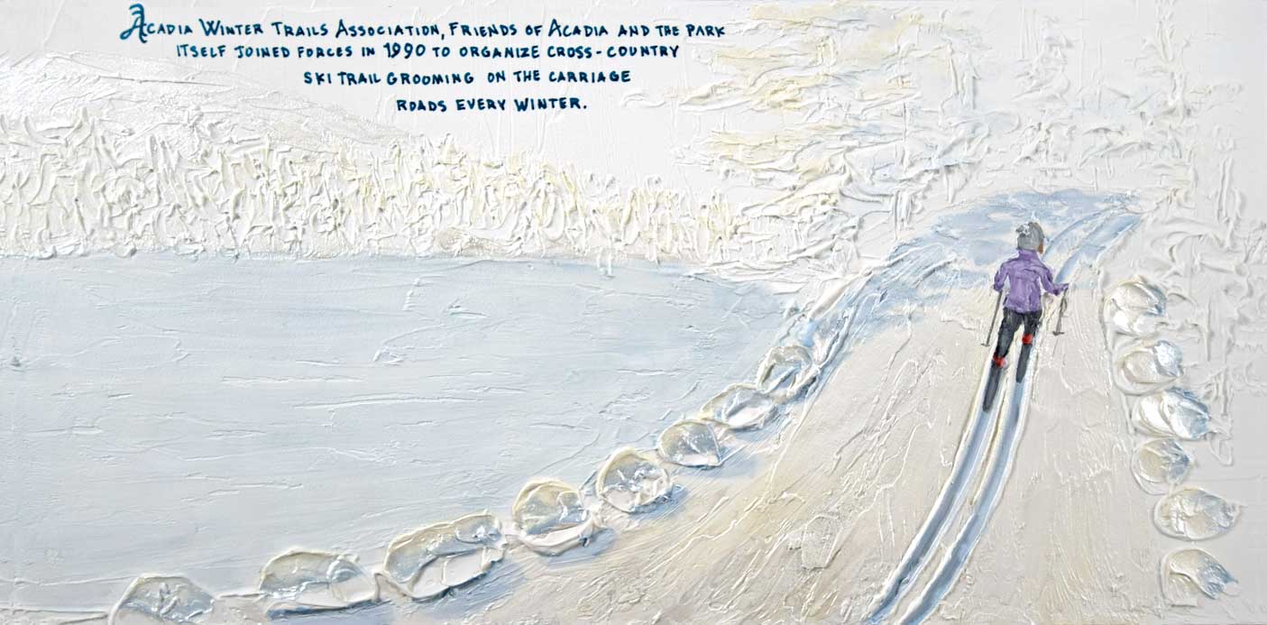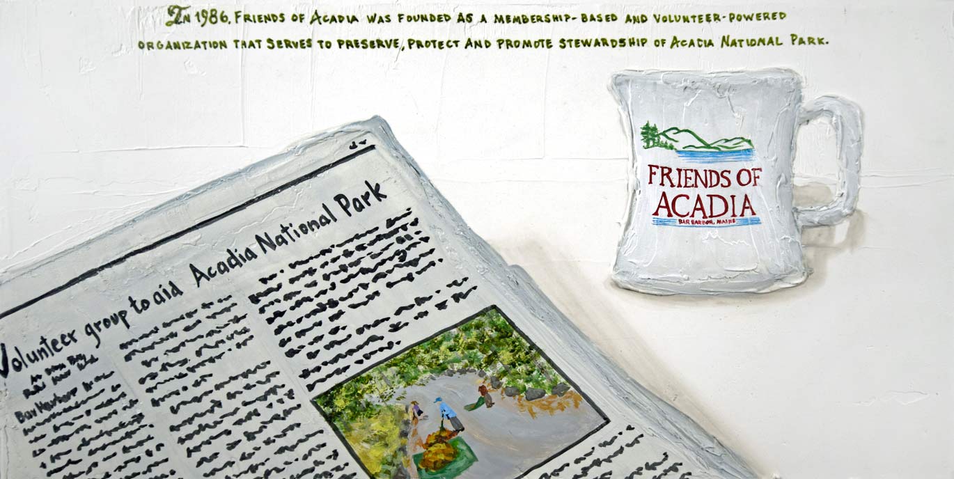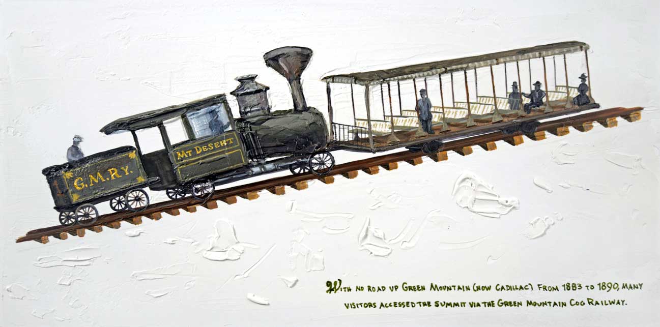 This collection of 100 paintings celebrates Acadia National Park’s Centennial in 2016. The paintings are inspired by objects and images found in the archives at Acadia National Park, as well as from area historical societies, museums and libraries. These 6"x12" panels showcase well known images, along with hidden gems from the park’s history that viewers are sure to find surprising and intriguing.